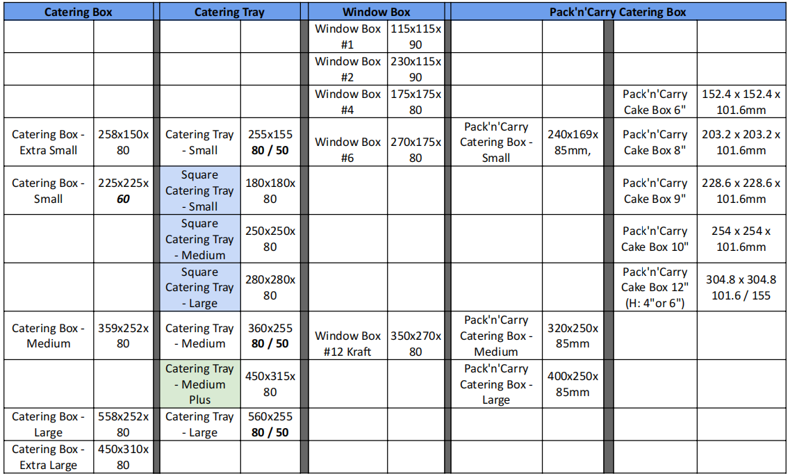 There is no better way to describe a platter of different finger food than a catering box. Our wholesale catering boxes are perfect for curious food lovers who want to see what’s inside. Our lids are transparent, and the packages come in different sizes, shapes and colours.